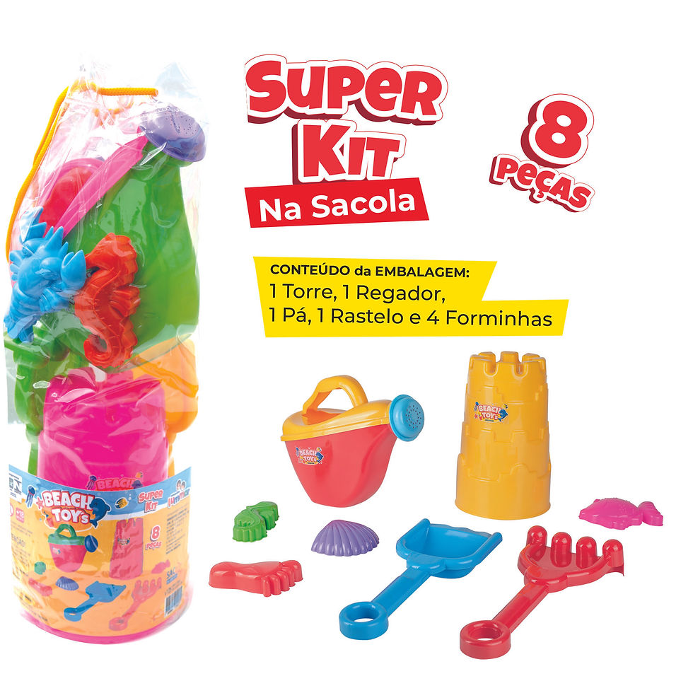 SUPER KIT BEACH TOYS 8 PEÇAS NA SACOLA